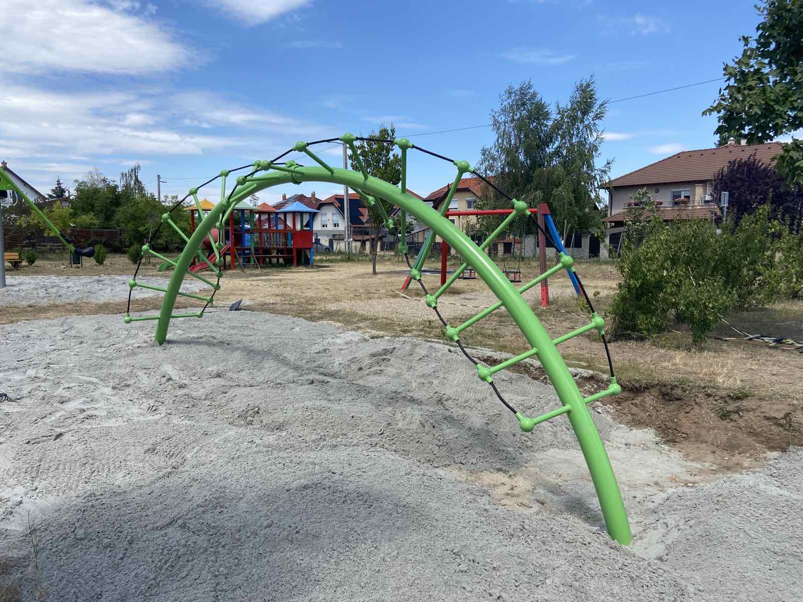 A Toldi-Dombliget lakópark mellett játszótéren egy süllyesztett trambulin, egy DNS spirál alakú mászóka és egy óriás libikóka kihelyezésére került sor.